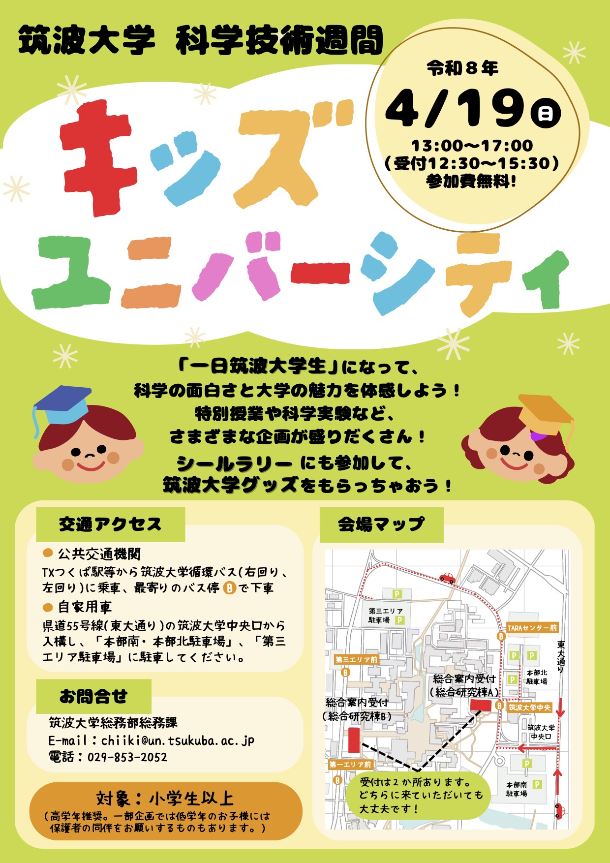 令和8年度筑波大学科学技術週間キッズ・ユニバーシティで、初心者向けに宇宙史研究センターの研究紹介を行います。